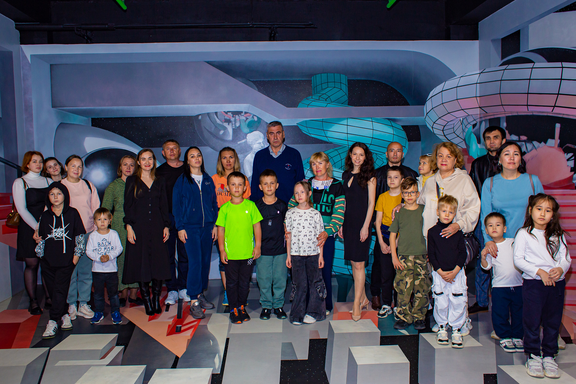 В рамках благотворительной акции более 30 семей бойцов СВО с детьми посетили 15 тематических локаций парка на площади 2000 м 2 , 7D кинотеатр и детское пространство «джамп ап». На память об этом дне у семей и их близких остались ярки фотографии в напоминание о поддержке родных СВО, а также веры в мирное будущее.