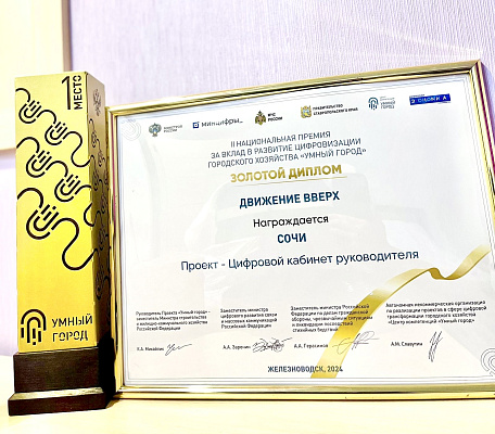 Сочи присвоено 1 место в номинации «Движение вверх» с проектом «Цифровой кабинет руководителя». Это цифровая платформа анализа деятельности органов местного самоуправления на базе инновационной отечественной технологии. Она включает в себя автоматизированный комплекс визуально-интерактивных панелей с автоматизацией управления ресурсами и процессами, визуальным мониторингом и персональным контролем за исполнением управленческих задач.