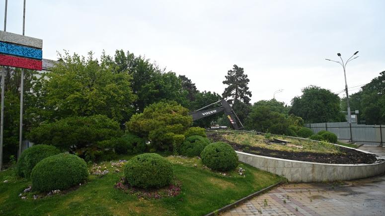 Сейчас там проходит масштабная реконструкция Андрей Зубов / krd.ru В краевом центре подрядчик приступил к основным работам по благоустройству сквера за цветочными часами.