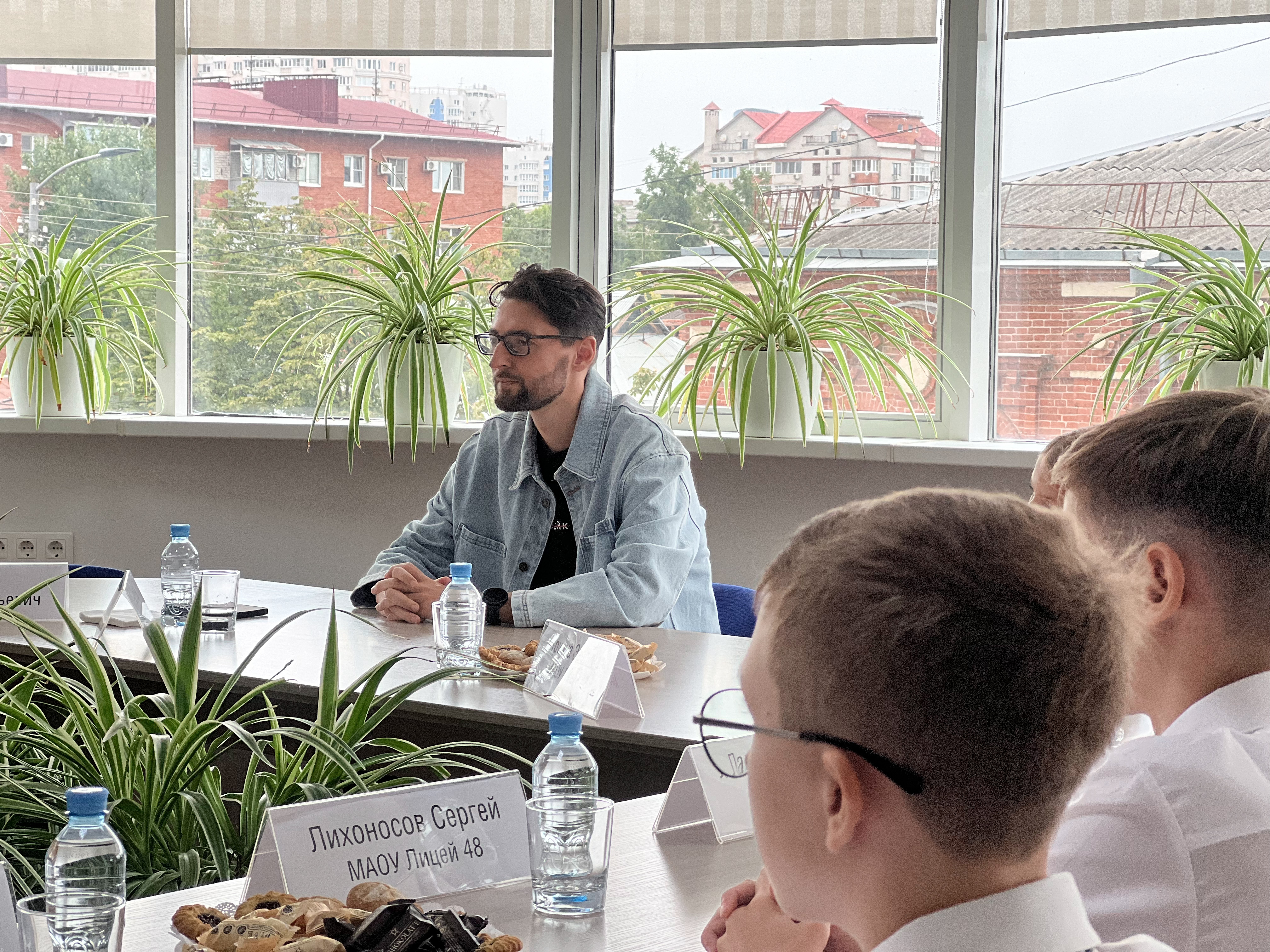Школьники Краснодара обсуждают важность лидерства и самоуправления на встрече с общественниками.