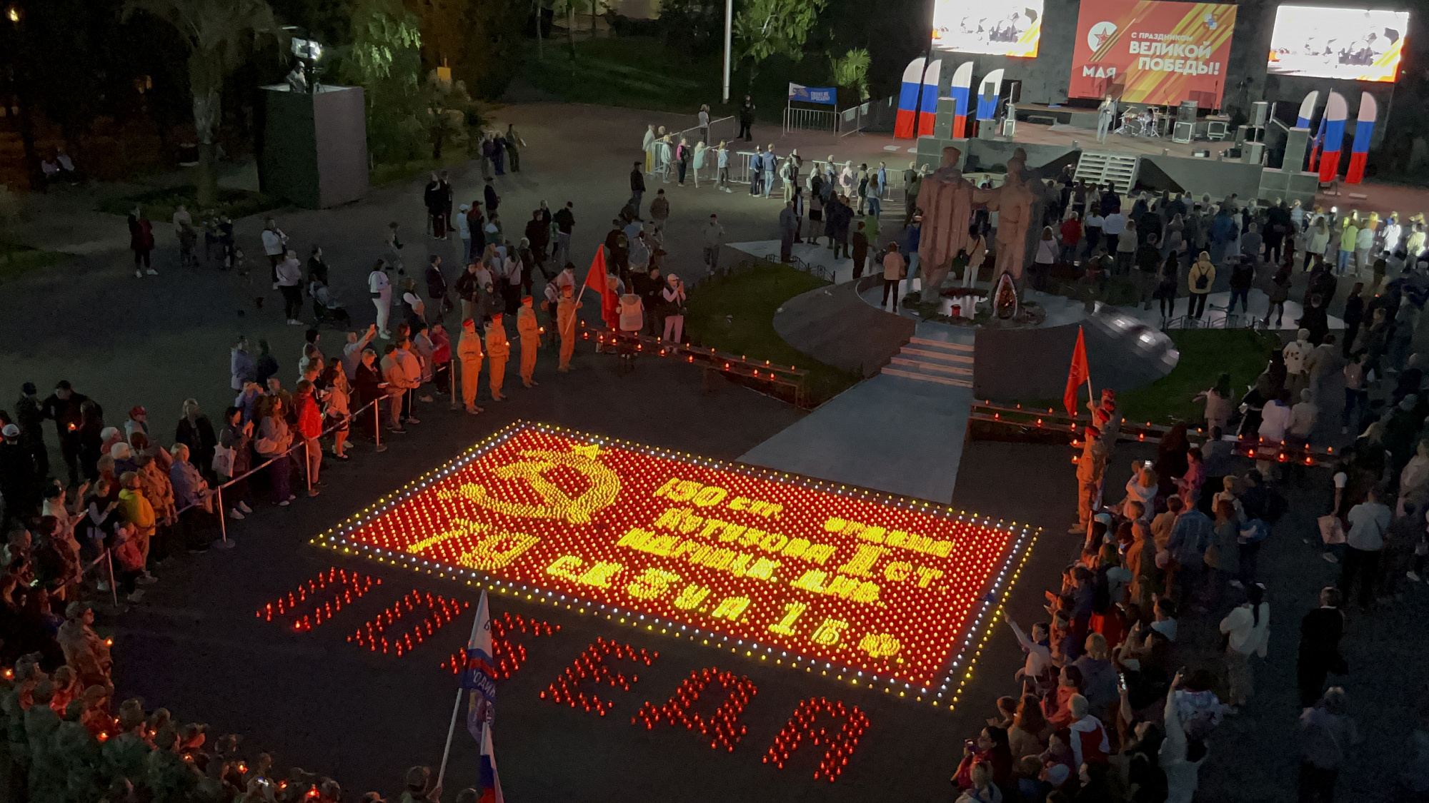 Вечером 8 мая у памятника адлерцам, погибшим в годы Великой Отечественной Войны» провели программу «Огонь памяти».