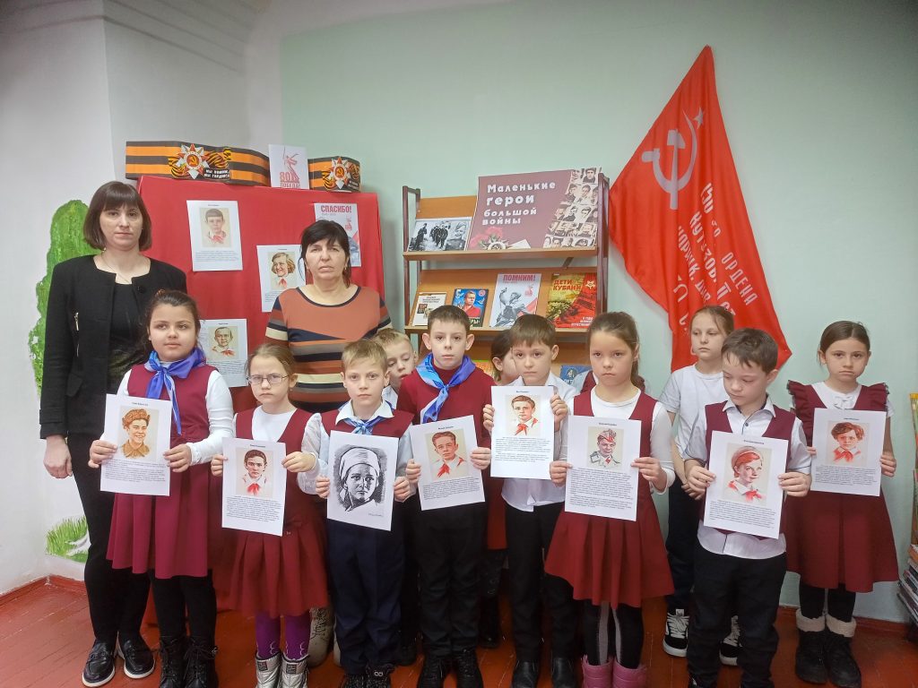 В рамках патриотического часа библиотекарь рассказала школьникам о юных героях Великой Отечественной войны. Ребята узнали о Лёне Голикове, Марате Казее, Зине Портновой, Вале Котик и Саше Чекалине — их героических подвигах и мужестве.