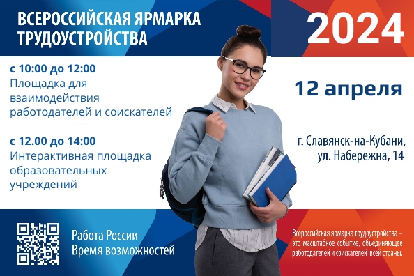 В Славянском районе ярмарка трудоустройства пройдет 12 апреля в детско-юношеской спортивной школе «Белая ладья» по адресу: г. Славянск-на-Кубани, ул. Набережна, 14. На ней представят вакансии более 30 работодателей, в том числе крупных промышленных предприятий, IT-отрасли и строительства. Начало мероприятия в 10 часов. Телефон для справок: +7 (86146) 4-00-87.