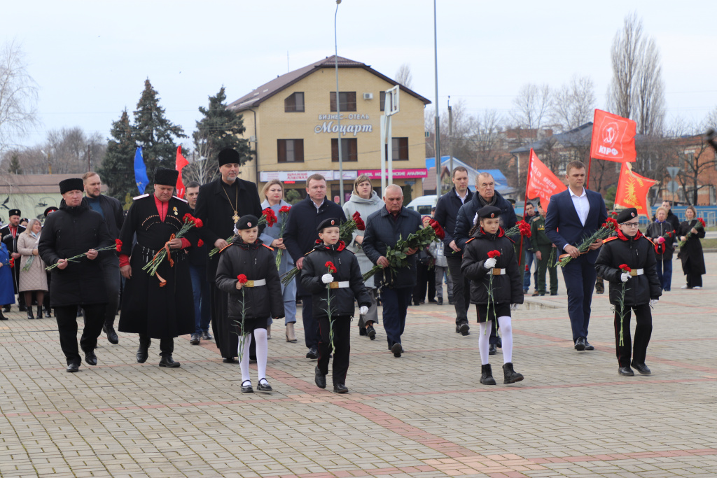 В этот день 1943 года была освобождена станица Динская. Отдать дань памяти погибшим солдатам, положившим жизнь на алтарь Великой Победы, на мемориальный комплекс станицы Динской пришли глава Динского района Евгений Пергун,