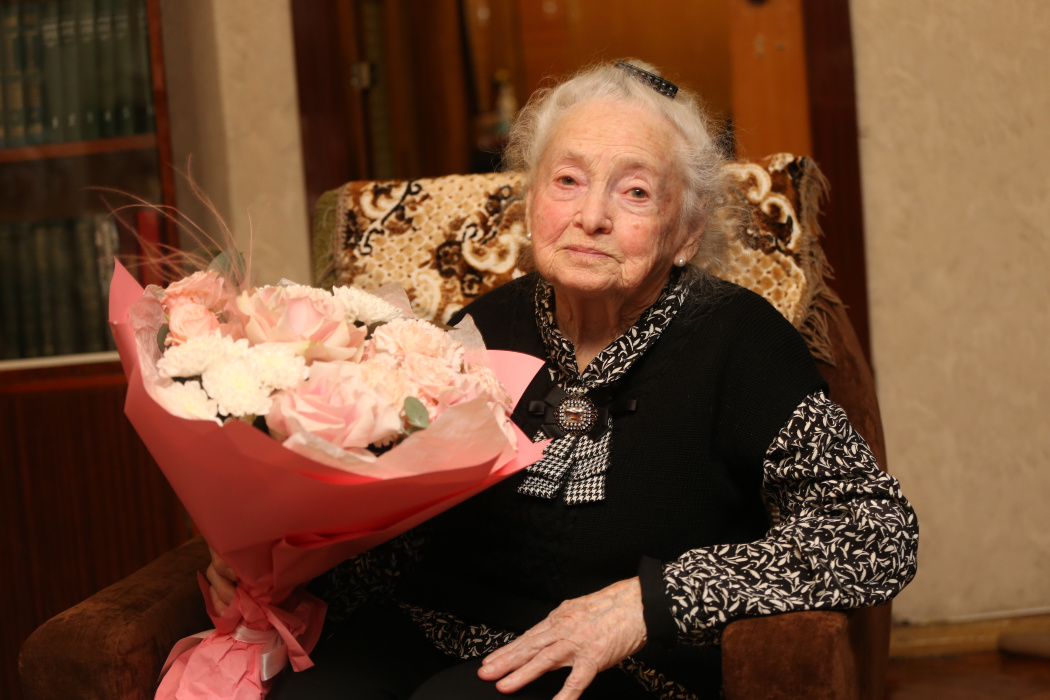 Александре Антоновне Лихачёвой – 90 лет! Поздравить именинницу от имени главы города Алексея Богодистова пришли сотрудники администрации, а также врачи городской больницы и скорой помощи, ученики школы №3.