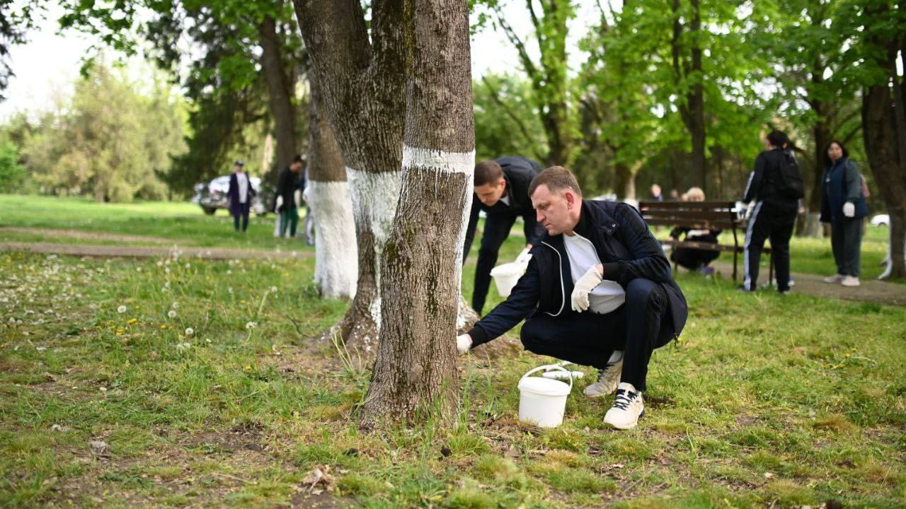 Также глава города побелил деревья в сквере «Кленовый» 1-го отделения учхоза «Кубань». Здесь собралось более ста жителей. Охватили около двух гектаров Кленового сквера.