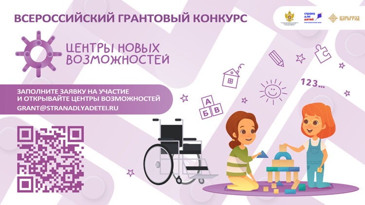 Всероссийский грантовый конкурс «Центры новых возможностей», направлен на помощь организациям в создании и развитии сети центров дневного пребывания для детей с инвалидностью и их семей.