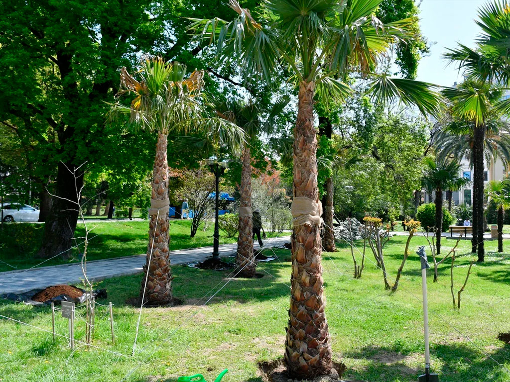 Вашингтония вырастает до 25 метров в высоту, а диаметр её ствола может достигать 100 сантиметров. Посадкой именно таких тропических растений курорт Сочи присоединился к международной акции «Сад памяти».