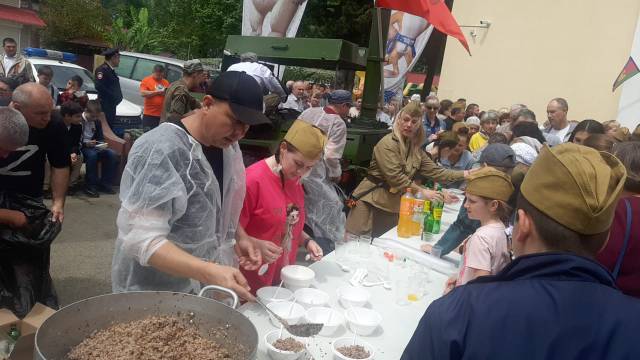 В День Победы депутаты Илья Стопченко и Артур Аркелян организовали в п. Дагомыс работу полевой кухни