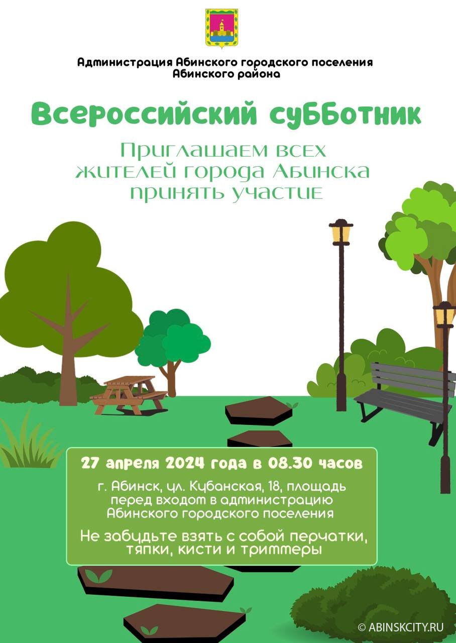 27 апреля в 08.30 приглашаем всех желающих принять участие во Всероссийском субботнике.