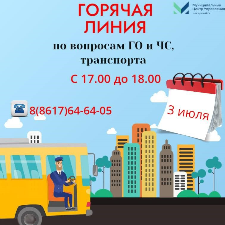 Уважаемые жители города-героя Новороссийска! 03 июля с 17:00 до 18:00 в Муниципальном центре управления состоится «горячая линия»,